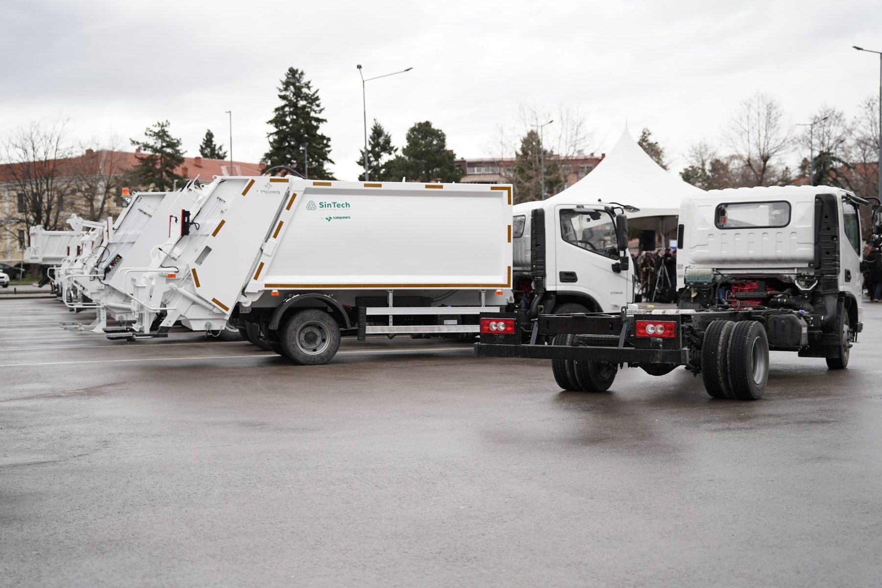 Денес е изложен дел од предвидената опрема – возила и контејнери – наменети за општините од Пелагонискиот и Југозападниот регион. Ова е видлив и практичен доказ за вложувањата што ги правиме: десет камиони со капацитет од 8 кубни метри, четири камиони од 12 кубни метри, еден кипер-камион, еден камион од марката „Рено“, како и друга придружна опрема која ќе ја зајакне ефикасноста на комуналните услуги.