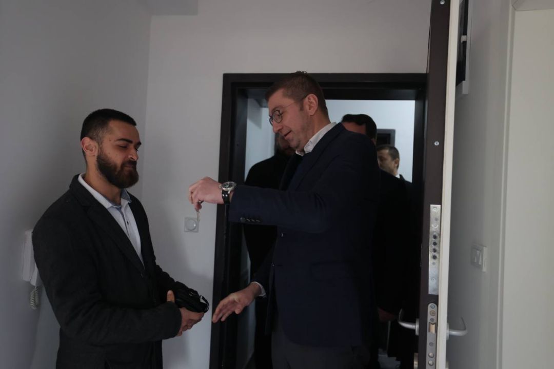 Ние како Влада продолжуваме да работиме, да испорачуваме тоа што сме го ветиле на граѓаните, така што уште еднаш еве и јас се приклучам на желбите за спокоен дом, за многу среќа, многу радости во овие домови на идните корисници и да ни се множат уште вакви објекти и уште многу среќни луѓе, кај нас дома во Македонија.“