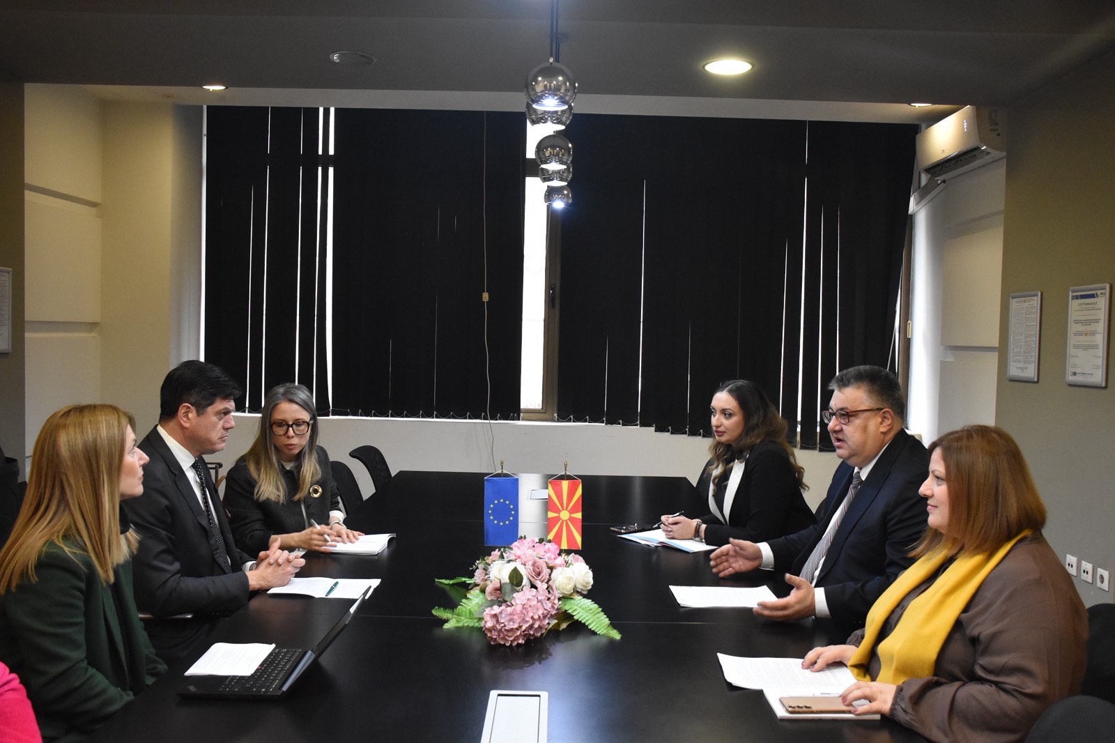 Министерот за јавна администрација, Горан Минчев, оствари работна средба со Н.Е. Михалис Рокас, Амбасадор на Европската Унија, посветена на тековните реформски процеси во јавната администрација и нивното понатамошно усогласување со европските стандарди и принципи на добро управување.