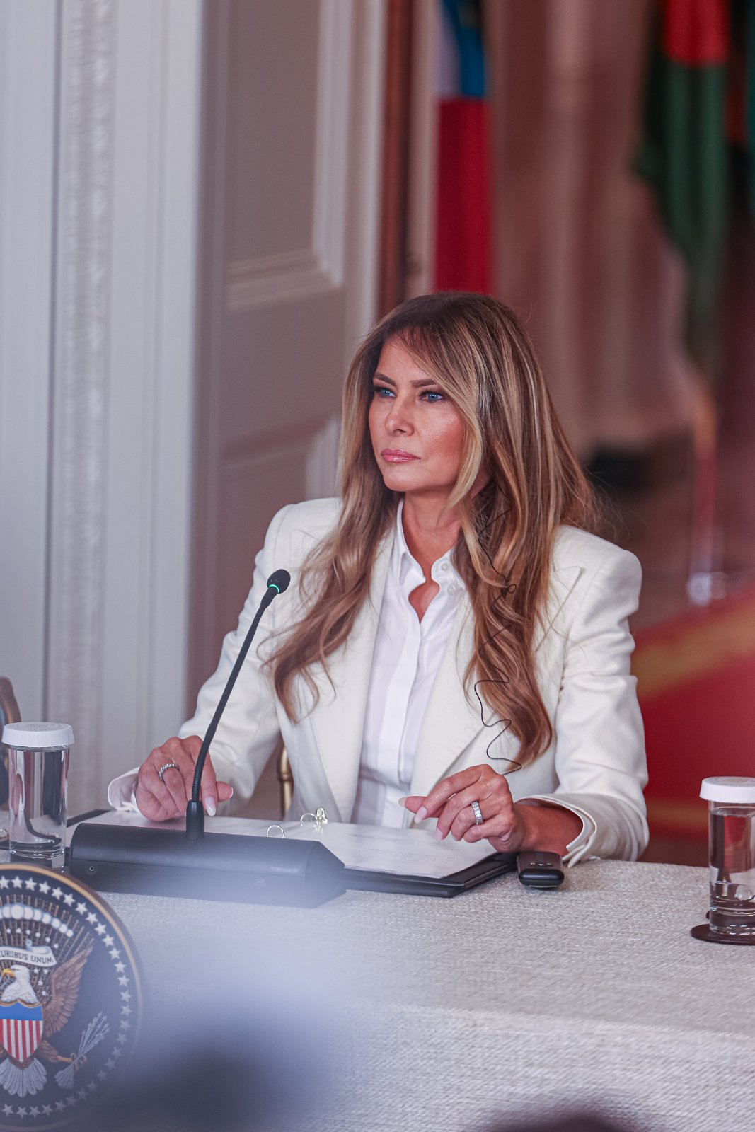 „Денес ми е посебна чест денес да примам толку импресивна група лидери. Четириесет и петмина од вас патуваа од секој агол на планетата за да ја претставуваат својата нација како дел од оваа нова коалиција. Заедно ја негуваме иднината. Нашата мисија, да им дадеме моќ на децата преку технологијата и образованието, е остварлива“, истакна во своето обраќање првата дама на САД.