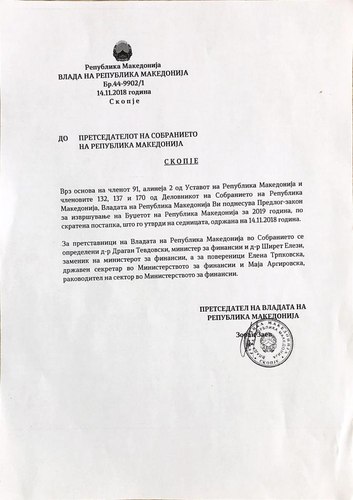 - Буџет на Владата на Република Северна Македонија - 2019 година